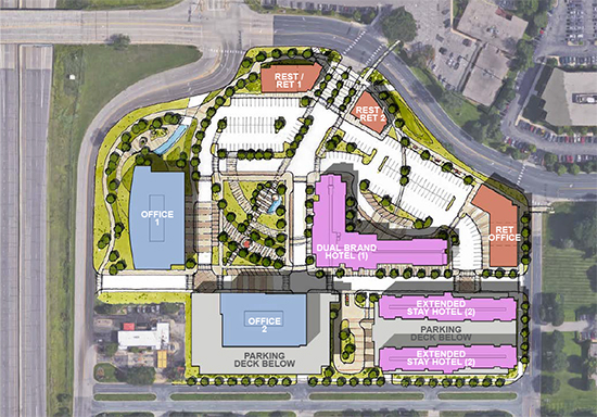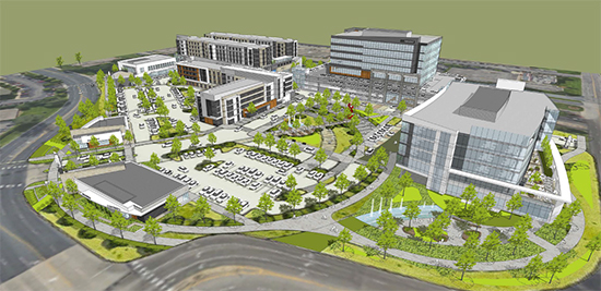 Pentagon Village is the redeveloped and repurposed 12-5-acres of land that originally contained the Pentagon Park office complex. Located at the highly visible and strategic intersection of Hwy 100 and W/ 77th Street, this property is the west gateway into the City of Edina. Pentagon Village will be a mixed-use project involving upscale retail and restaurants, two class-A office buildings, two hotels, and shared parking garages all surrounding a central plaza and park.